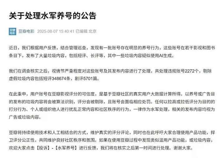 诚然豆瓣评分一直饱受质疑,也一直有片方企图去为止它,但是至少豆瓣官方一直有作念出崇尚评分刚正刚正的致力,且关于热点影片而言,当等闲网友的打分数富余多时,片方的可控幅度也就十分有限了。