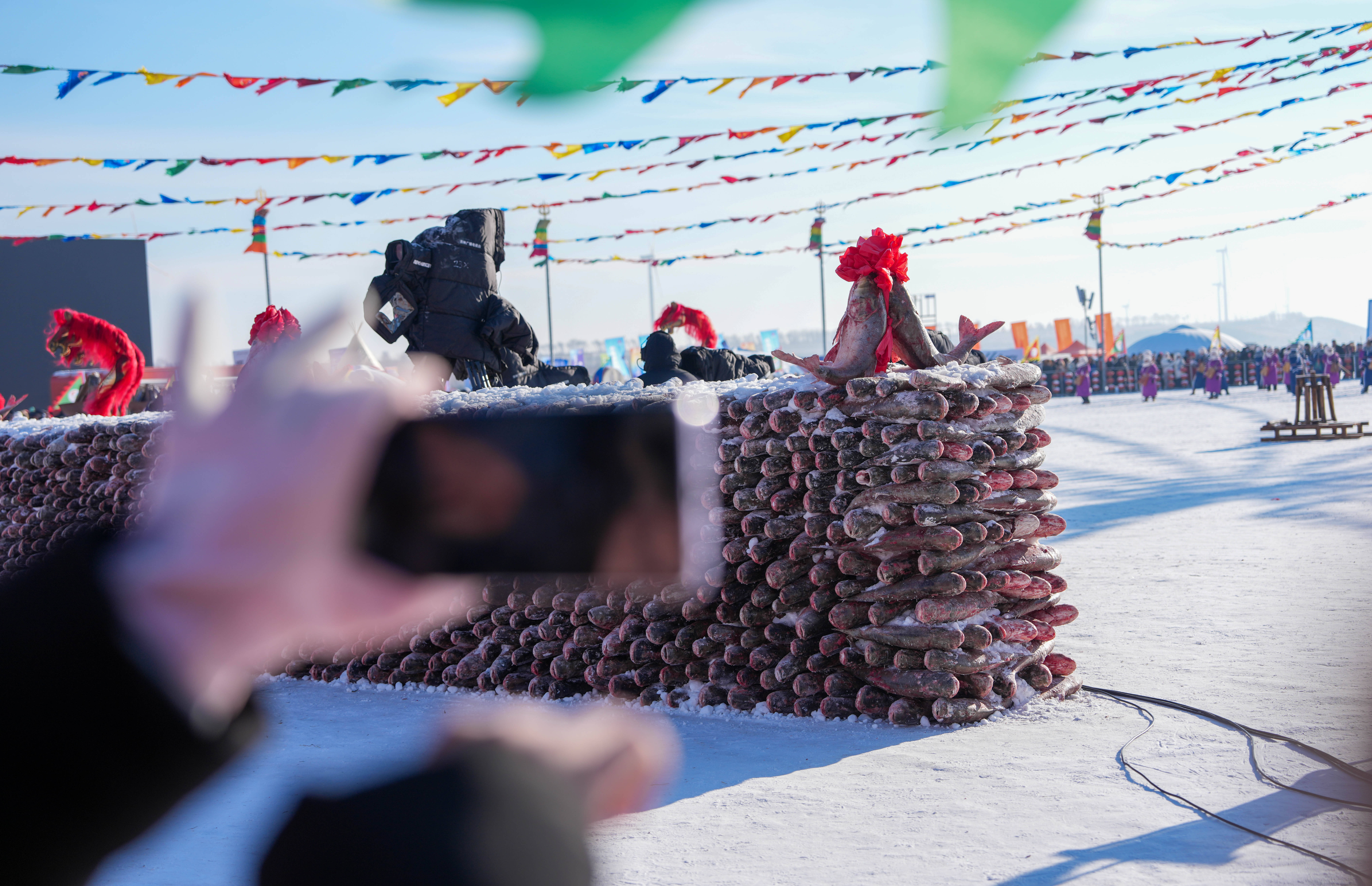 在1月8日的吉林·查干湖第24届冰雪渔猎文化旅游节开幕式现场,搭客正在拍摄“鱼墙”相片。新华社记者 颜麟蕴 摄冬捕仅仅查干湖的一张柬帖。如今这里正打造四季旅游体验,变成了“冬捕、春游、夏赏荷、秋不雅鸟”的全季旅游花样。查干湖风干鱼制作本事传承东谈主单军国说:“当年以渔业为主,当今发展成为渔业、旅游、体育、文化和会的详尽性产业。”