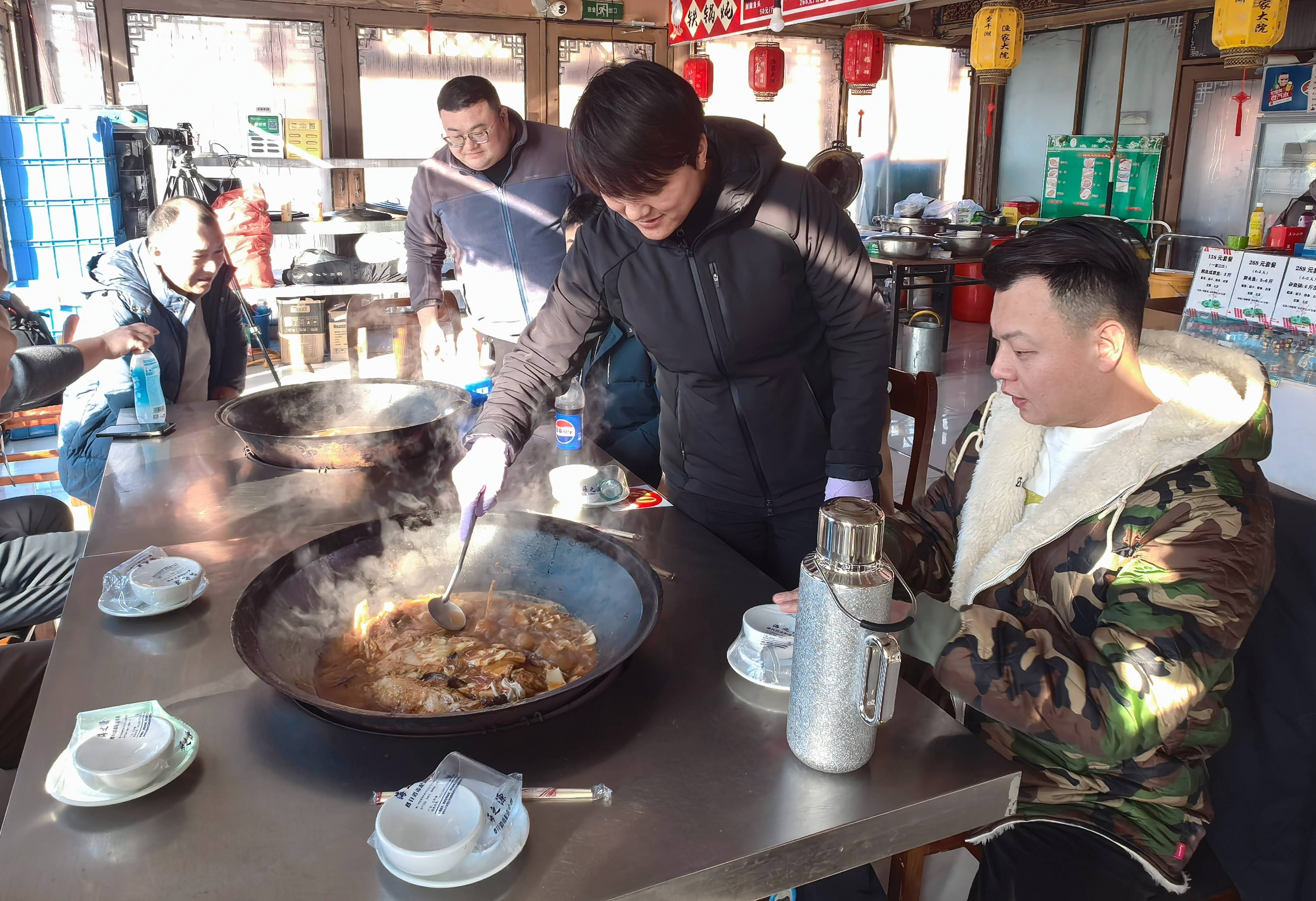 在查干湖周边的村镇,当地庶民开起了农家乐、民宿,买卖红火。适值午饭点,查干湖渔家大院饭馆民宿里,雇主朱娇张罗着给南边来的宾客炖胖头鱼。从十几年前的三间小瓦房,发展到当今的两栋小楼,在她看来,这些年查干湖水清了、鱼多了,买卖越来越好。