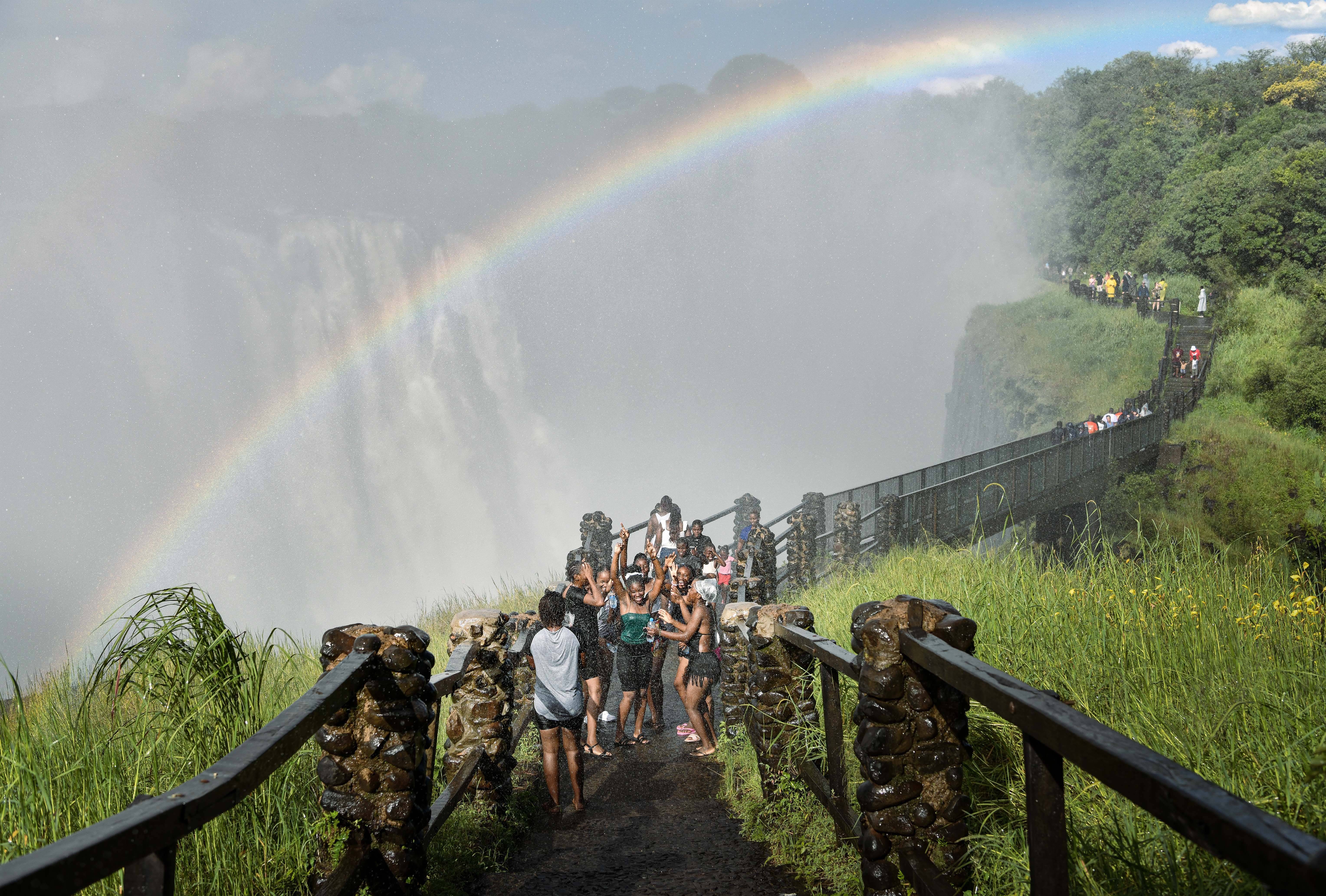 2025年3月29日,旅客在赞比亚一侧不雅赏维多利亚瀑布怡悦。