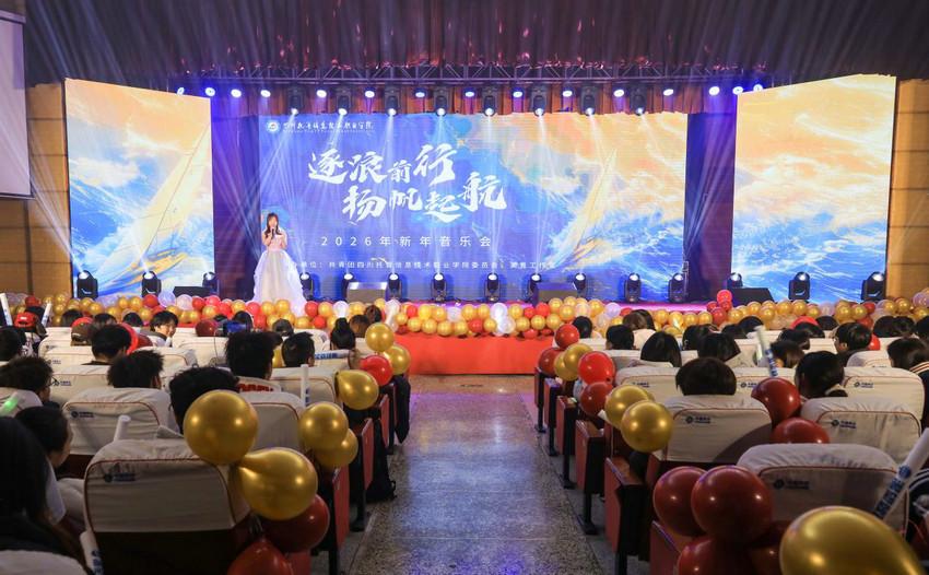12月19日,四川托普信息本领奇迹学院“逐浪前行 扬帆起航”2026新年音乐会在学校会堂精彩上演。本次手脚由学校团委与好意思育责任室共同阁下,师生同台,以音乐传递祝贺,共迎新年。