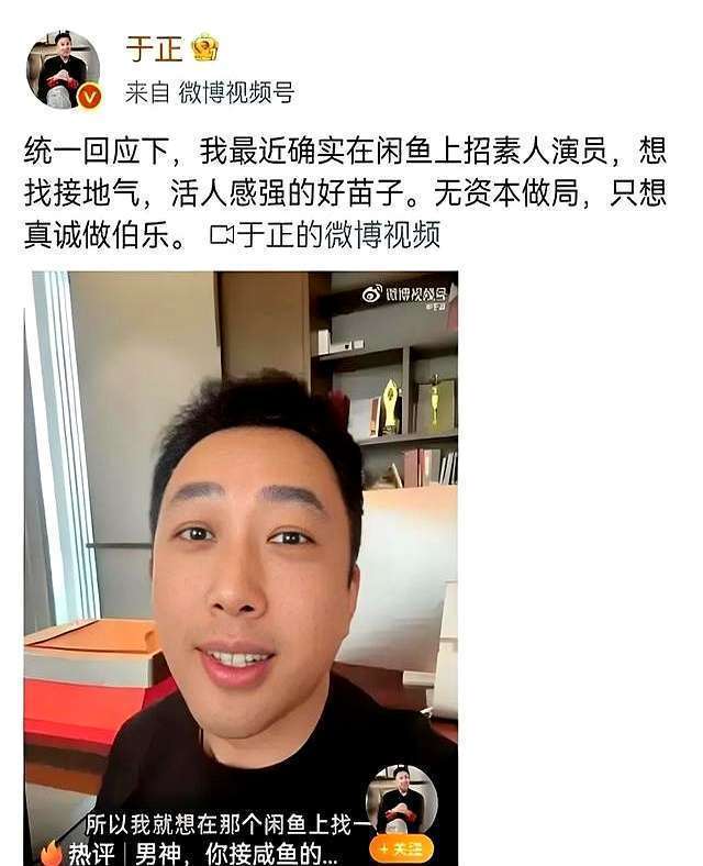 演艺圈再起海潮,驰名制片东谈主于正近日在二手交往平台闲鱼上公开招募素东谈主演员,激发往日关注。
