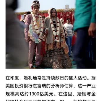 【嫁妆逼死六千新娘:印度东说念主为何为“嫁儿子”贪赃枉法?】#印度的嫁妆每年逼死6000新娘# 译言网:在印度开云体育,婚典时常是执续数日的庞杂作为。据好意思国投资银行杰富瑞的分析师估算,这一产业畛域高达约1300亿好意思元。在这里,婚配与财富被社会压力牢牢系结在一说念——新娘的父母必须为一场浪掷的婚典买单,就怕还要支付嫁妆。嫁妆在法律上早已被退却,但在本质中仍屡禁不啻。